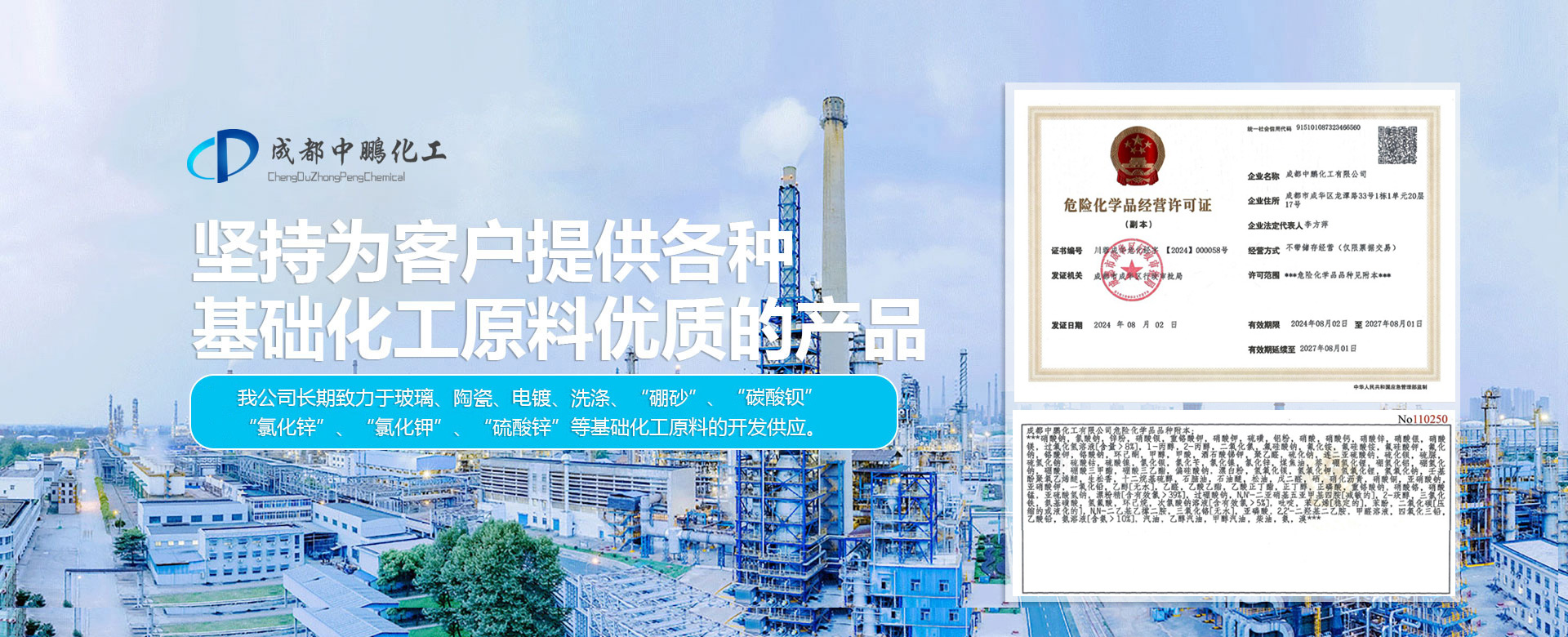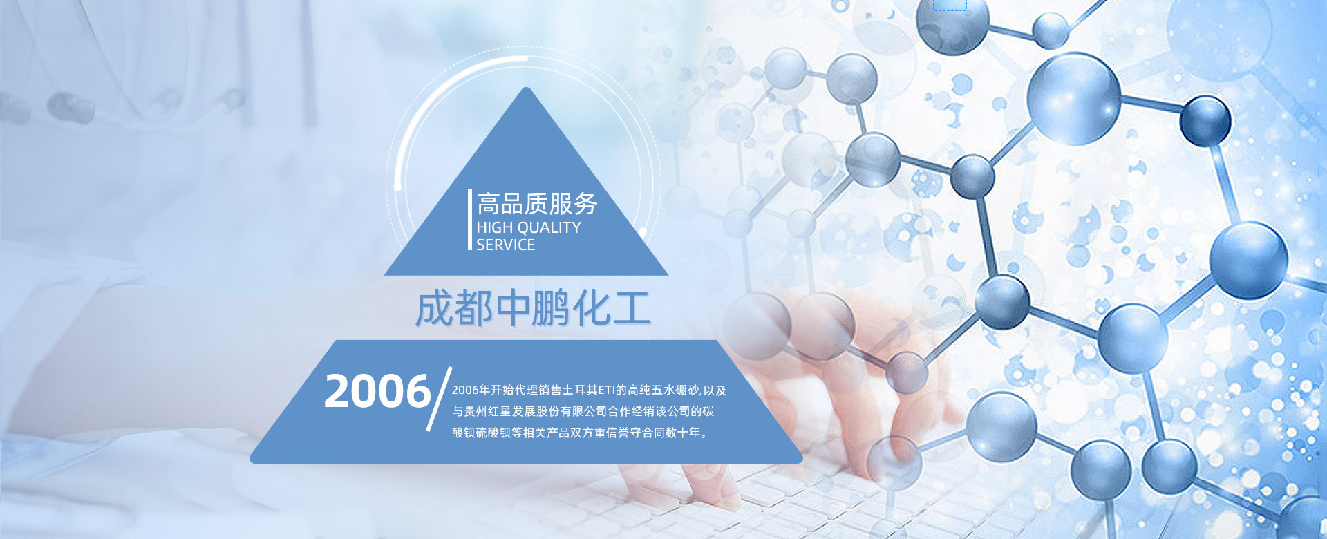 成都中鵬化工有限公司成立于2001年,位于成都市新都區(qū)木蘭木名商塑化城2棟11號(hào),公司成立16年以來(lái),一直堅(jiān)持為客戶提供各種基礎(chǔ)化工原料的產(chǎn)品。我公司長(zhǎng)期對(duì)于玻璃、陶瓷、電鍍、洗滌、“硼砂”、“碳酸鋇”、“氯化鋅”、“氯化鉀”、“硫酸鋅”等基礎(chǔ)化工原料的開(kāi)發(fā)供應(yīng)。 公司現(xiàn)在員工上百人,在全國(guó)擁有多個(gè)營(yíng)銷(xiāo)體系和完善的售后服務(wù)體系,長(zhǎng)期以來(lái),通過(guò)為客戶提供各種基礎(chǔ)化工原料的產(chǎn)品,形成了良好的合作關(guān)系...